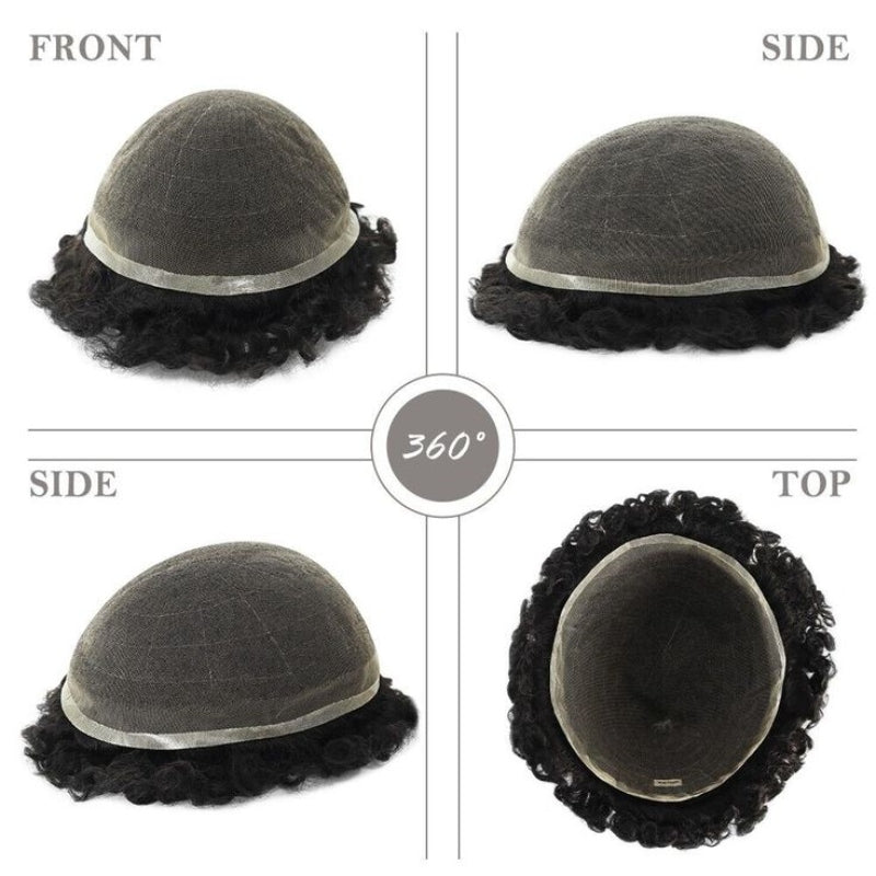 Afro Curly |Full French Lace Base Hairpiece| Toupee for Men | Afro Style Hair System|130% Density| Size 8''x10''