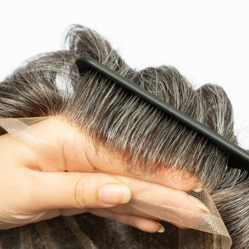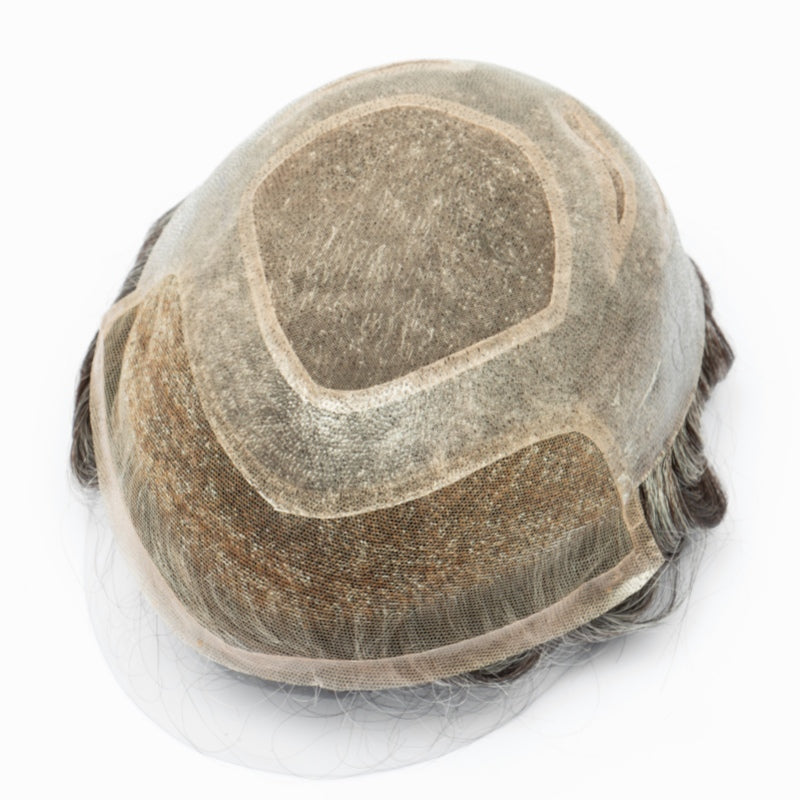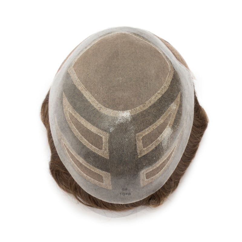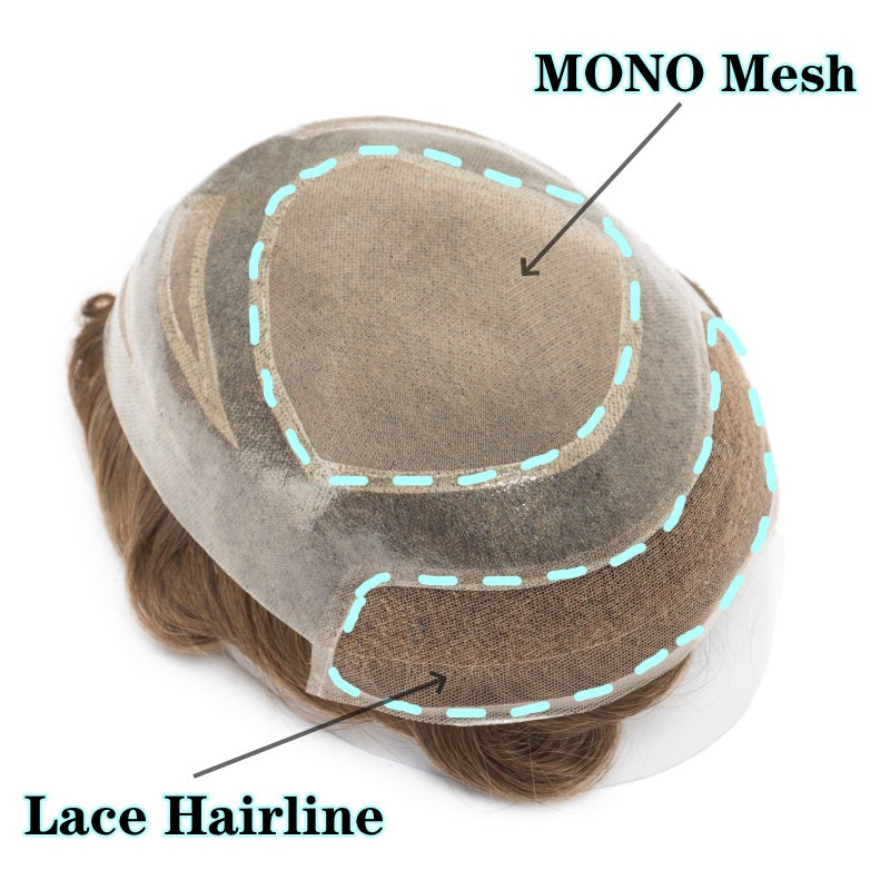French Lace front, mono mesh center 4"x4", Poilskin in perimeter |